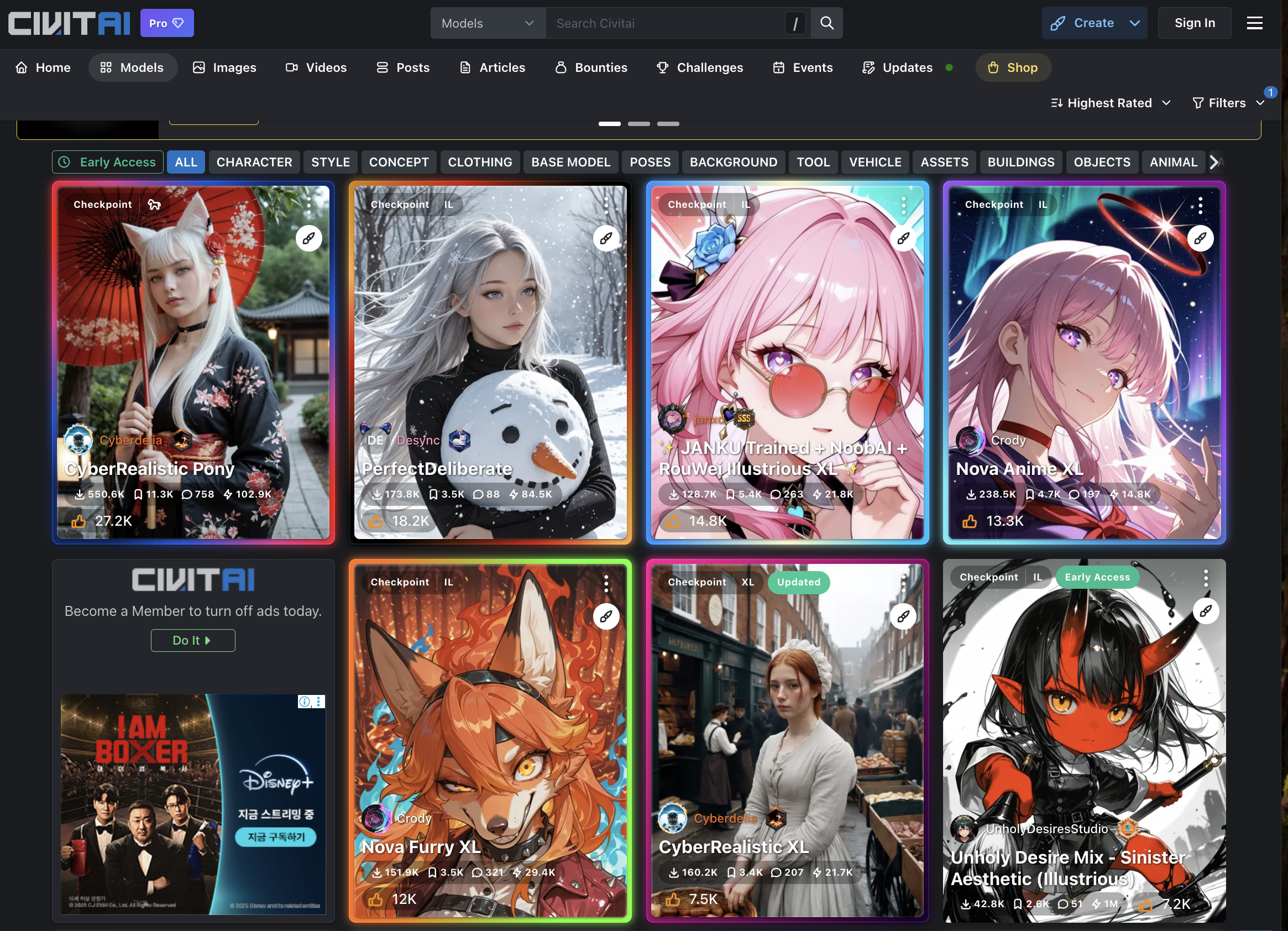 civitai 사이트에 들어가 보시면 다양한 LoRA 모델을 확인할 수 있습니다!