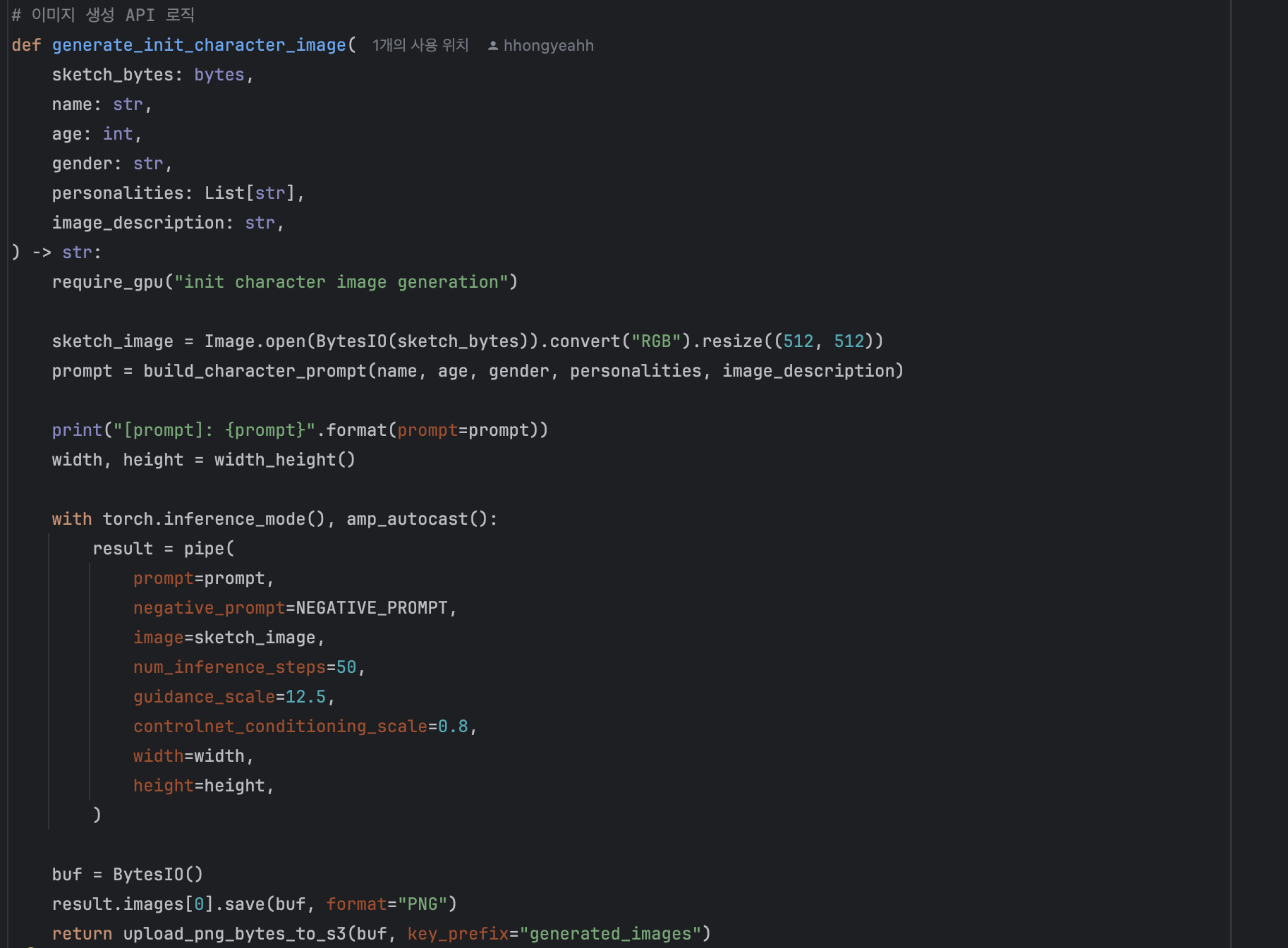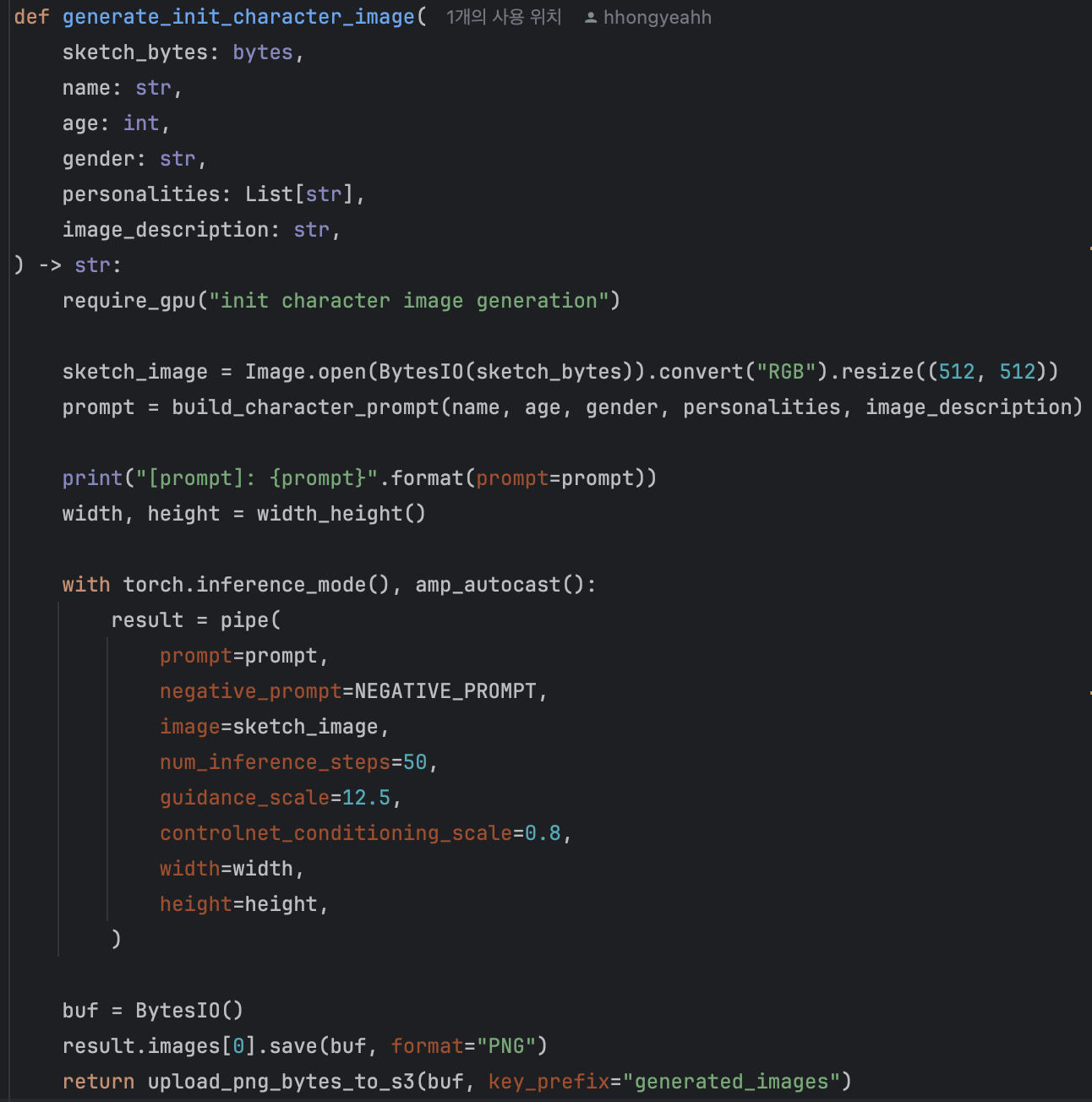 이 함수는 아이가 그린 스케치 한 장을 “완성 캐릭터 일러스트”로 바꿔 주는 핵심 로직이라고 볼 수 있습니다!