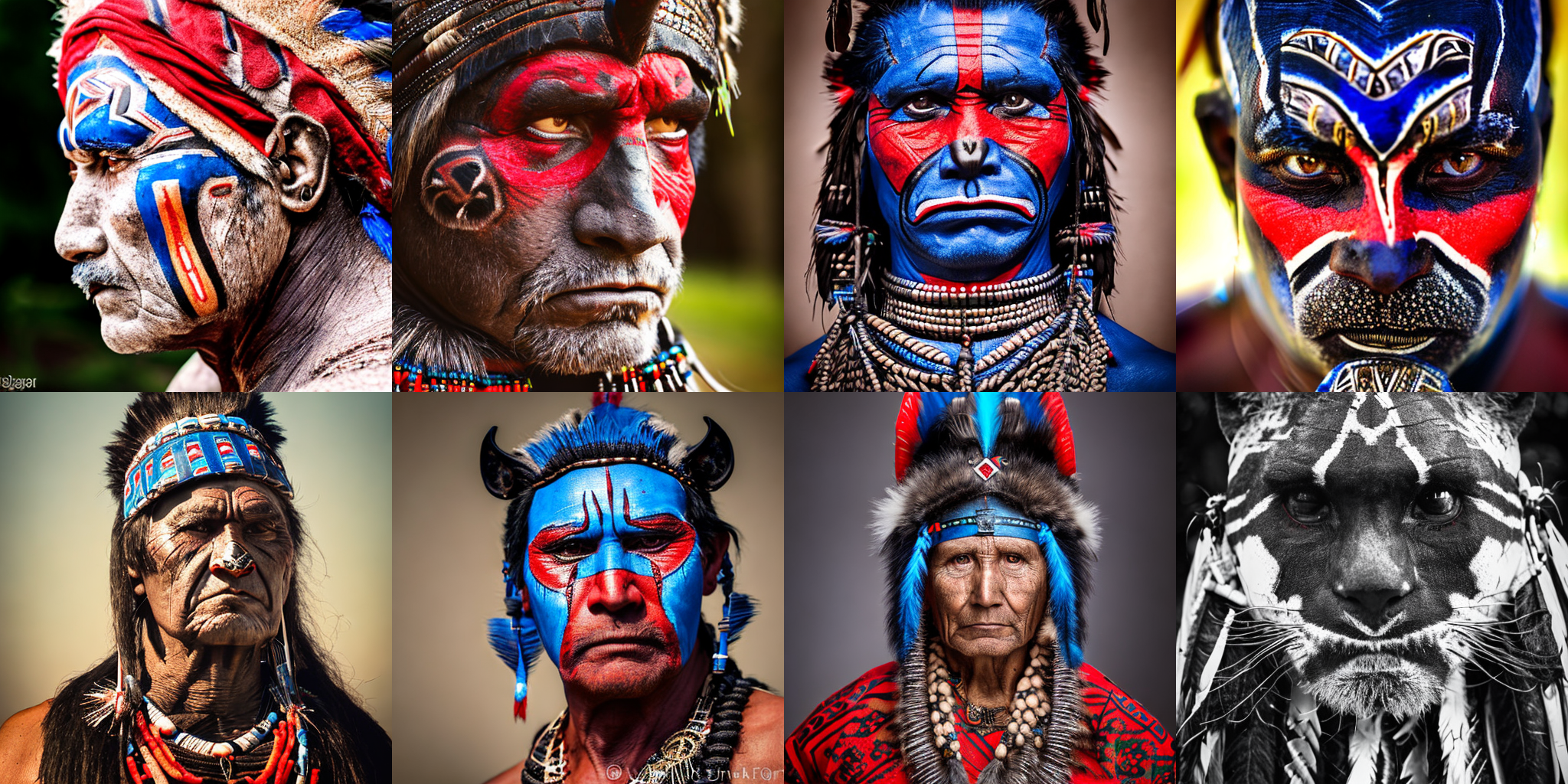 prompt += ", tribal panther make up, blue on red, side profile, looking away, serious eyes"