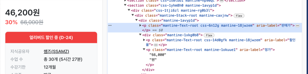 - 가격은 판매가, 할인율, 정가, 분할납부 등 강좌별로 여러가지 종류로 나뉘기 때문에 try-except문을 사용해 case를 나누어 주어야한다.