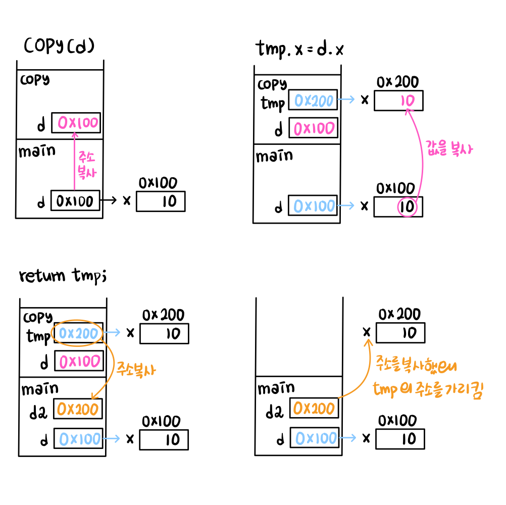 tmp.x = d.x; // d.x의 값을 tmp.x에 복사(2)
