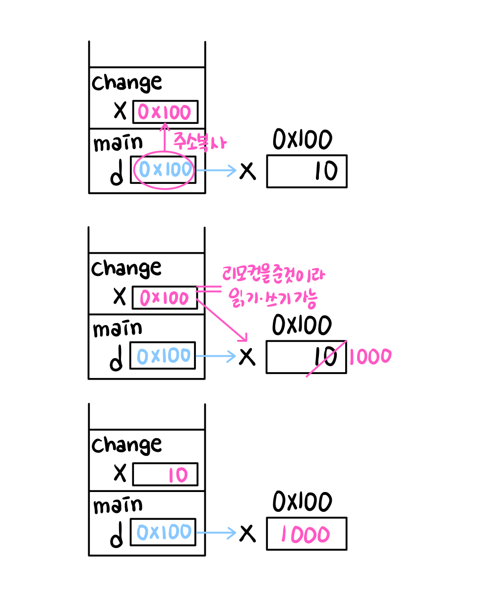 참조형 매개변수 → 읽기, 쓰기(변경)