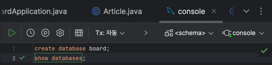 console 창 : DB 생성