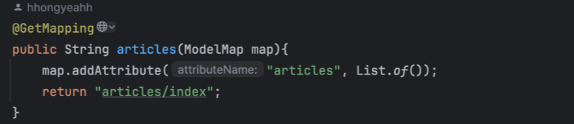 //모델 애트리뷰트라는 맵에 해당 이름(articles)의 키가 있는지 체크 (내용 까지 검증하는 것은 아님)