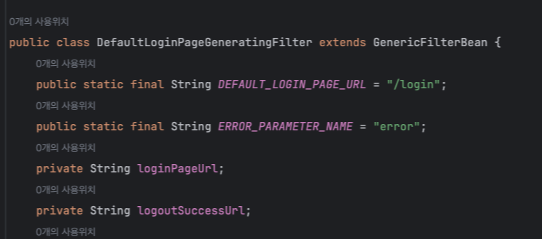 - DefulatLoginPageGeneratingFiler.class 에 들어가 보면, 자동적으로 로그인 페이지를 생성해준 코드가 보인다.